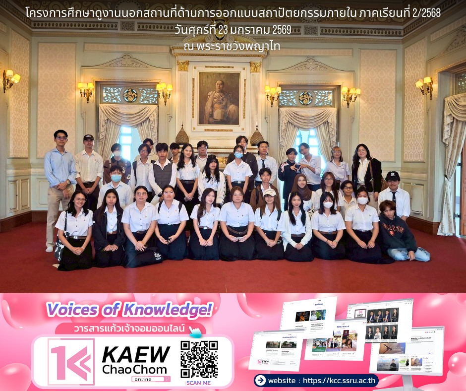 Ms. Nattakan Prathumphon, Lecturer of the Interior Architecture Program, together with Mr. Pham Le Gia Huy (Foreign Instructor / Visiting Lecturer), led second-year students from the Interior Architecture Program, College of Architecture, Suan Sunandha Rajabhat University, on an academic field trip to Phaya Thai Palace.
