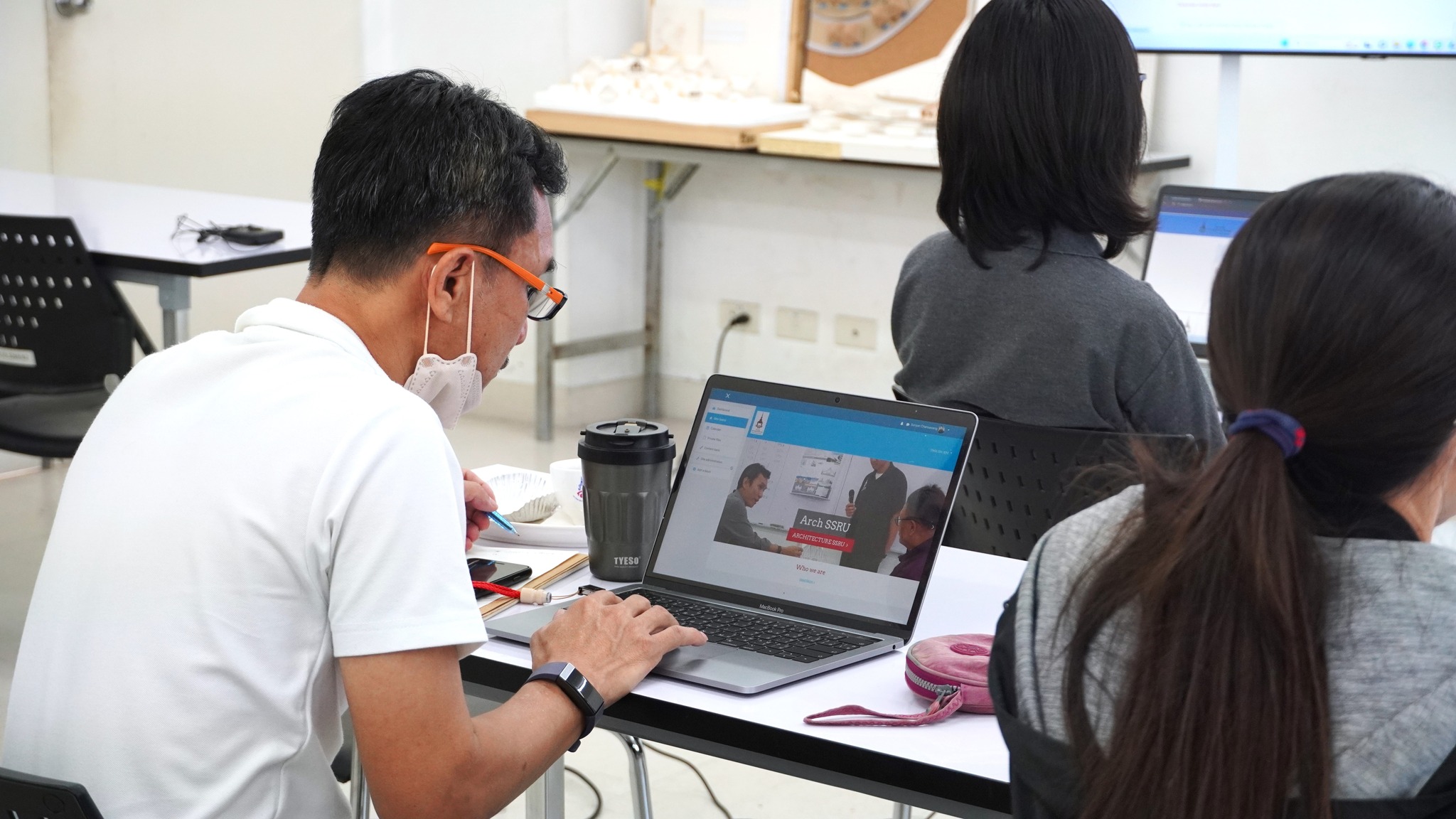 College of Architecture Organize a training project on making a Moodle website for full-time teachers. Fiscal year 2024 to develop the faculty's website for developing teaching with the Hyflex classroom system to operate with maximum efficiency. Was honored by Assistant Professor Dr. Sathien Chanpla as a speaker in the lecture. with Assistant Professor Dr. Somboon West, Dean of the College of Architecture along with professors and college staff attended training at the College of Architecture