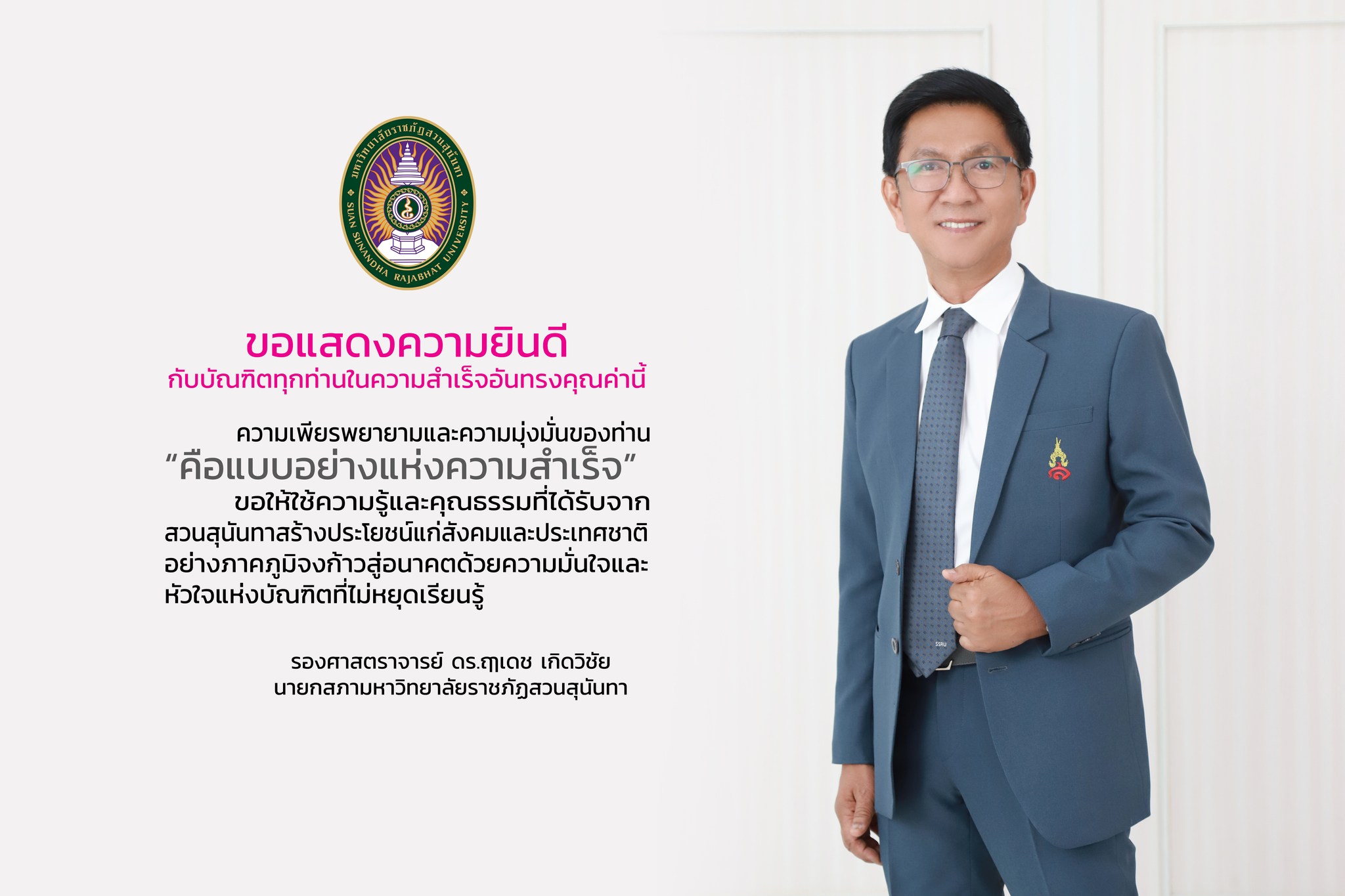 May the knowledge and moral values you have gained from Suan Sunandha guide you in contributing proudly to society and the nation.