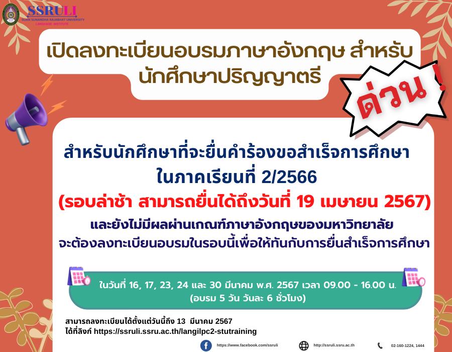 Before 12.00 noon at the link https://ssruli.ssru.ac.th/langilpc2-stutraining