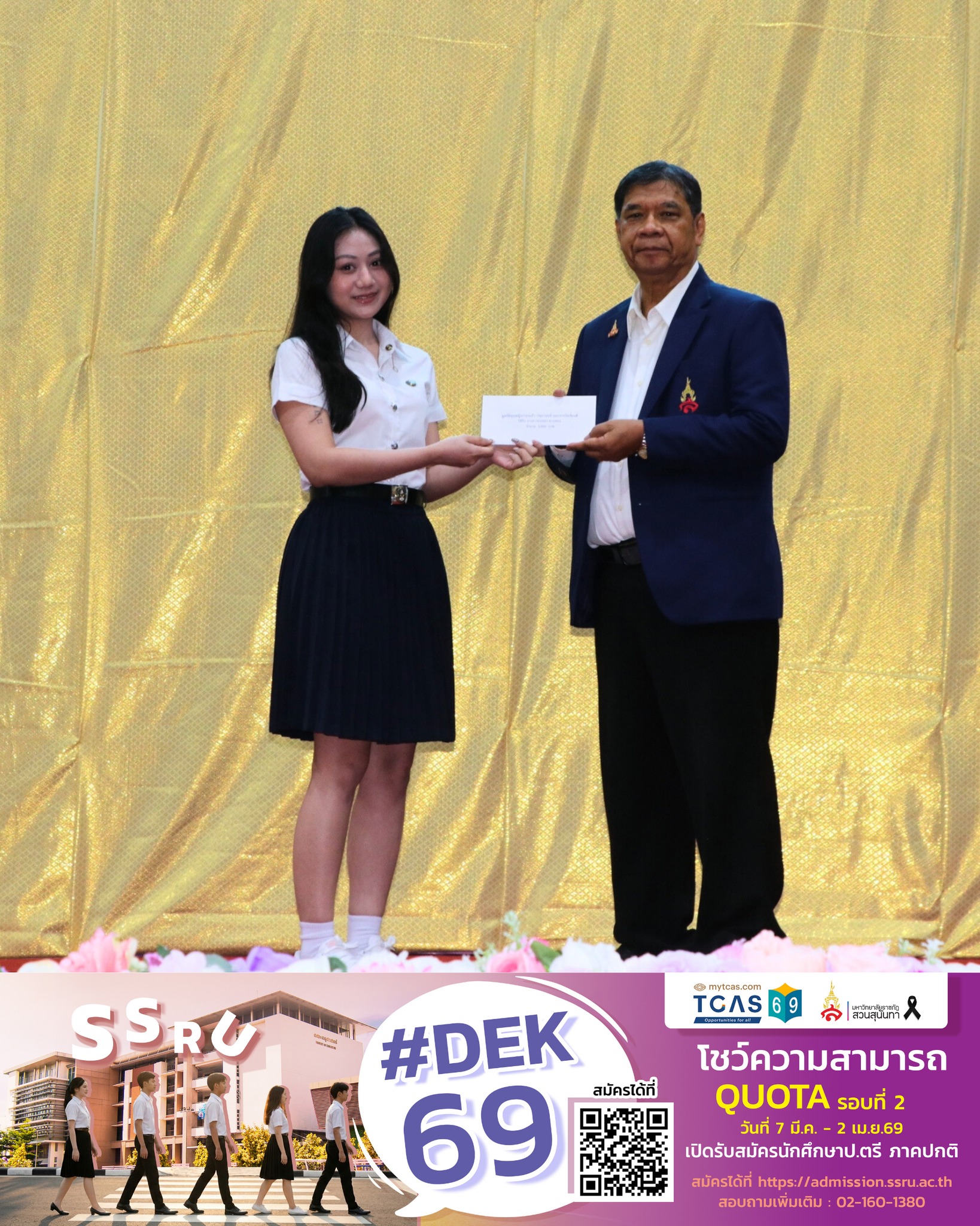 This event was made possible through the collaboration of the Student Development Division, Suan Sunandha Rajabhat University, the SSRU Retired Officials Club, and the Khunying Krongkaew Patumanon Foundation, aiming to promote and support educational opportunities for students.