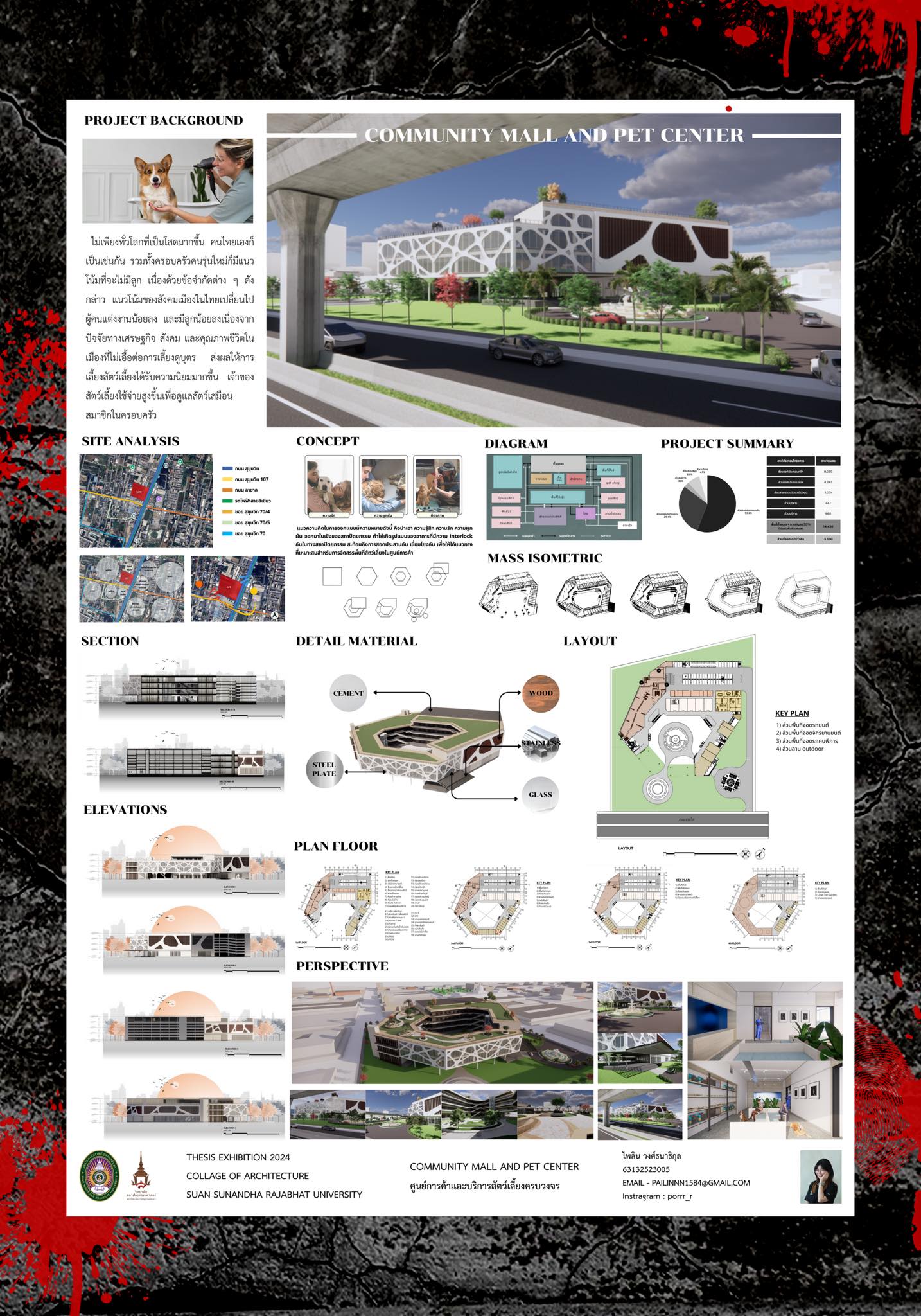 โครงการนี้ศึกษาการออกแบบพื้นที่สำหรับสัตว์เลี้ยงในมิติสถาปัตยกรรม โดยพิจารณากรณีศึกษาจากอาคารศูนย์การค้าที่มีการจัดสรรพื้นที่สำหรับสัตว์เลี้ยงในรูปแบบต่างๆ เช่น พื้นที่สำหรับการเดินเล่น พื้นที่ออกกำลังกาย หรือบริการต่างๆ สำหรับสัตว์เลี้ยงพื้นที่ที่สามารถกระตุ้นให้สัตว์ได้ใช้พลังงานและพัฒนาทักษะทางร่างกาย โดยเน้นการใช้วัสดุและเทคนิคการออกแบบที่ปลอดภัยและเหมาะสม