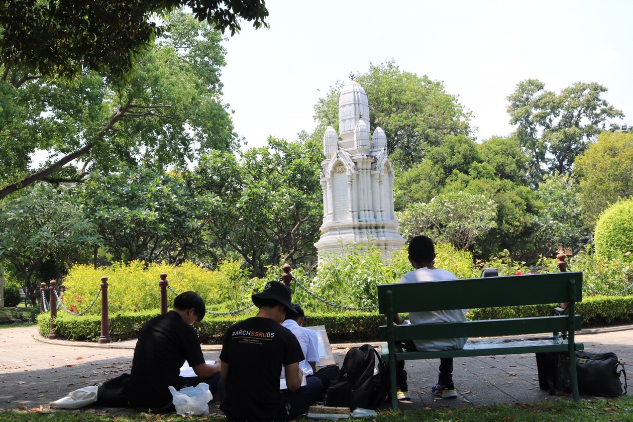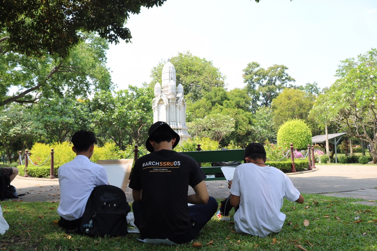 อาจารย์พิพัฒน์ ศักดิ์ศิริเกษมกุล อาจารย์ประจำสาขาวิชาสถาปัตยกรรม และ Ms.Dulce Abellanosa (อาจารย์ดูลเซ่ อะเลยาโนซ่า) อาจารย์ชาวต่างประเทศ วิทยาลัยสถาปัตยกรรมศาสตร์ นำนักศึกษาชั้นปีที่ 1 ลงพื้นที่วาดเส้นเขียนภาพสีน้ำ ณ "อนุสาวรีย์สมเด็จพระนางเจ้าสุนันทากุมารีรัตน์" ตั้งอยู่ภายในสวนสราญรมย์ สวนสาธารณะภายในเกาะรัตนโกสินทร์ ซึ่งแต่เดิมนั้นเป็นพระราชอุทยานของพระราชวังสราญรมย์