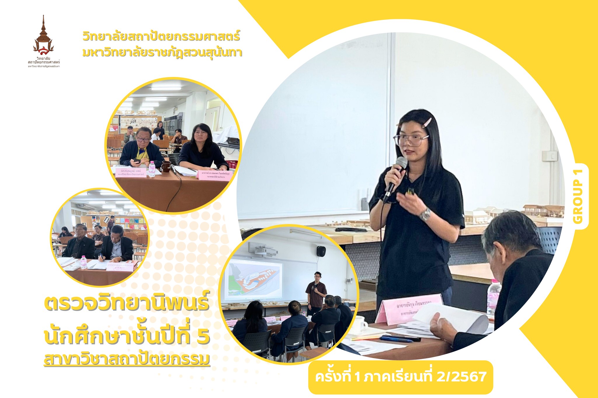 วิทยาลัยสถาปัตยกรรมศาสตร์ ได้รับเกียรติจากกรรมการผู้ทรงคุณวุฒิภายนอก คุณเทอดเกียรติ ศักดิ์คำดวง (อดีตนายกสมาคมสถาปนิกชุมชนเมืองไทย) อาจารย์นิรุจ เจียมจรรยง (อดีตรองผู้ว่าการการเคหะแห่งชาติ) พร้อมด้วยคณะกรรมการของวิทยาลัย ประกอบด้วย ผศ.ดร.สมบูรณ์ เวสน์, ดร.ชนกพร ไผทสิทธิกุล ตรวจวิทยานิพนธ์นักศึกษาชั้นปีที่5 สาขาวิชาสถาปัตยกรรม ครั้งที่1 (กลุ่มที่ 1) ภาคเรียนที่ 2/2567 ณ วิทยาลัยสถาปัตยกรรมศาสตร์