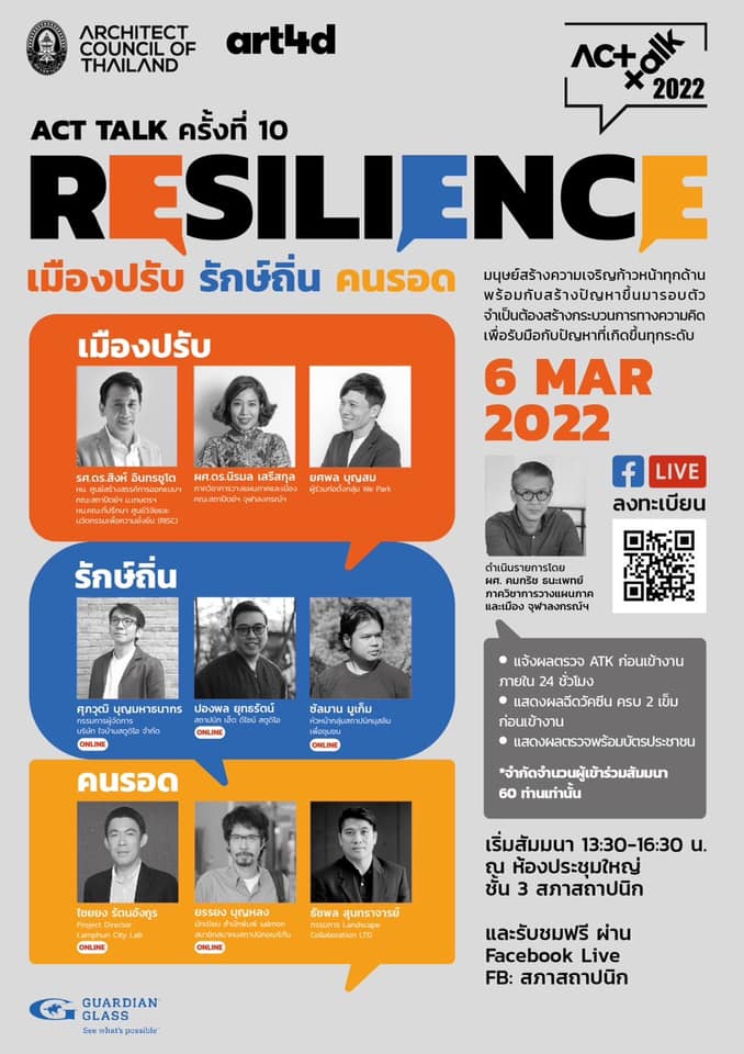 > สภาสถาปนิก เชิญร่วมกิจกรรม ACT TALK ครั้งที่ 10 ภายใต้หัวข้อ RESILIENCE เมืองปรับ รักษ์ถิ่น คนรอด