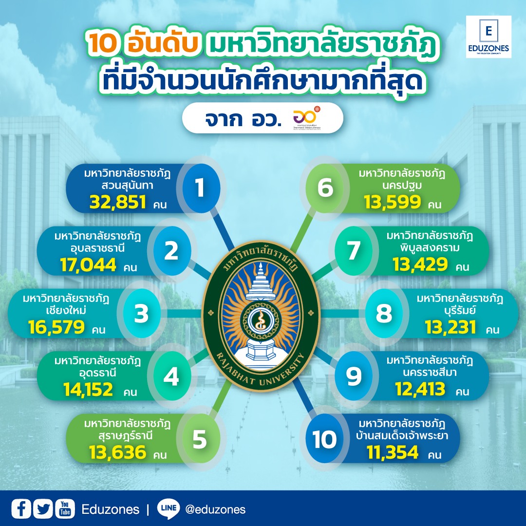 10 อันดับจำนวนนักศึกษามากที่สุดใน มหาวิทยาลัยราชภัฏ จากผลสำรวจจากสำนักงานปลัดกระทรวงการอุดมศึกษา วิทยาศาสตร์ วิจัยและนวัตกรรม ปีการศึกษา 2565