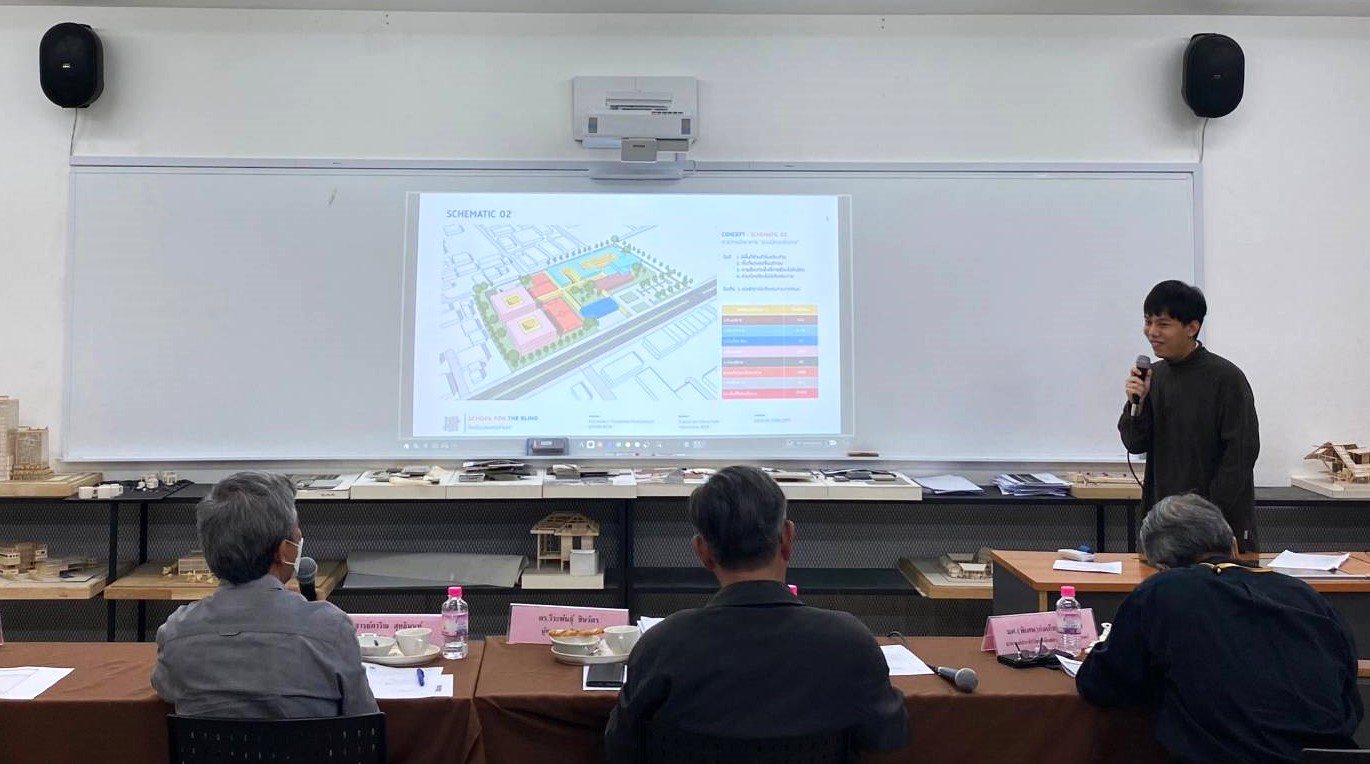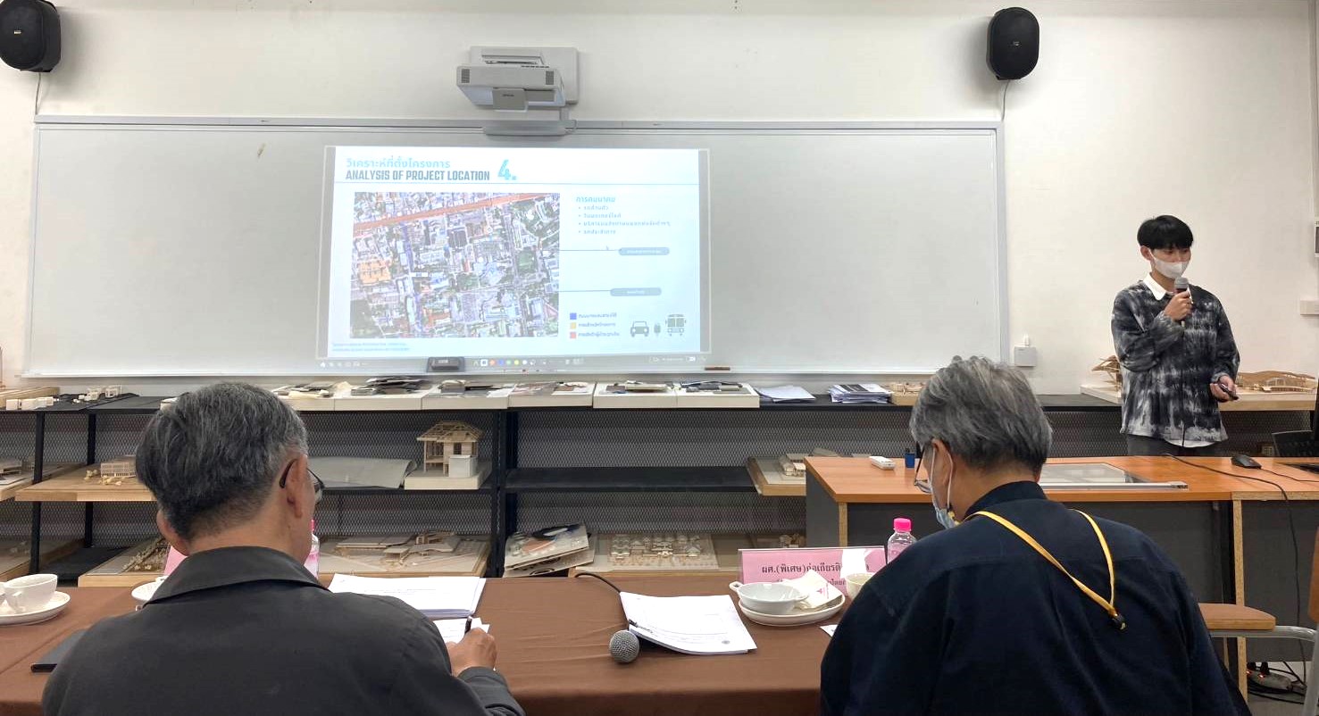 วิทยาลัยสถาปัตยกรรมศาสตร์ ได้รับเกียรติจากกรรมการผู้ทรงคุณวุฒิภายนอก ดร.วีระพันธุ์ ชินวัตร (อดีตคณบดีคณะสถาปัตยกรรมศาสตร์และการออกแบบ มหาวิทยาลัยเทคโนโลยีพระจอมเกล้าธนบุรี) อาจารย์ผู้ทรงคุณวุฒิ ผู้ช่วยศาสตราจารย์อารยา ศานติสรร พร้อมด้วยคณะกรรมการของวิทยาลัย อาจารย์ภาวิณ สุทธินนท์ (รองคณบดีฝ่ายวิชาการ) และ ผู้ช่วยศาสตราจารย์พิเศษก่อเกียรติ นิมมล ตรวจความก้าวหน้าวิทยานิพนธ์นักศึกษาชั้นปีที่5 สาขาวิชาสถาปัตยกรรม ครั้งที่4 (กลุ่มที่ 3) ภาคเรียนที่ 1/2566 ณ วิทยาลัยสถาปัตยกรรมศาสตร์