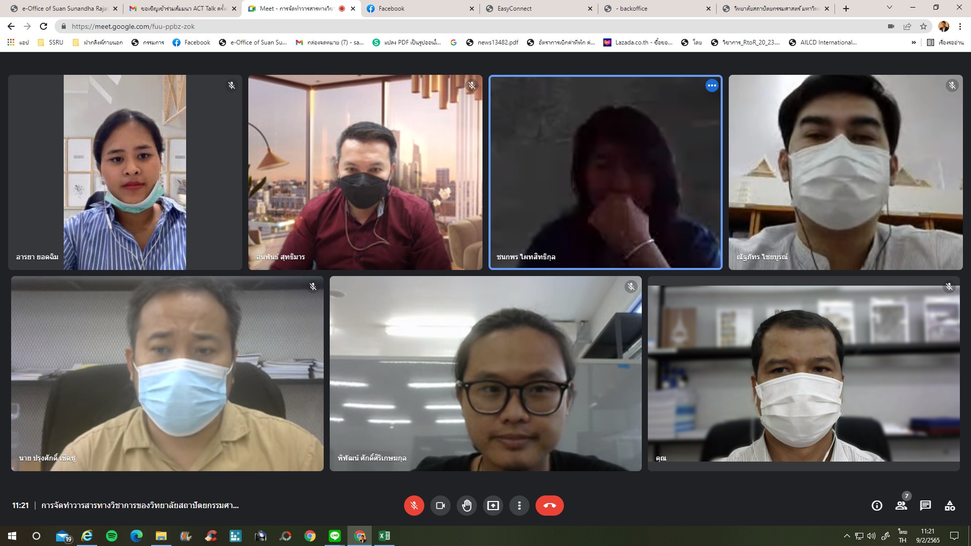 วันที่ 9 กุมภาพันธ์ 2565 เวลา 10.00 - 12.00 น. ทีมผู้บริหารวิทยาลัยสถาปัตยกรรมศาสตร์ โดยรับเกียรติวิทยากรจากสถาบันวิจัยและพัฒนา คุณอนุพันธ์ สุทธิมาร หัวหน้าฝ่ายบริหารงานทั่วไป และคุณอารยา ยอดฉิม เจ้าหน้าที่บริหารงานทั่วไป เป็นวิทยากรเพื่อให้ข้อมูลในการจัดทำวารสารวิชาการ ของวิทยาลัยสถาปัตยกรรมศาสตร์ และระบบฐานข้อมูลวารสารอิเล็กทรอนิกส์กลางของประเทศไทย ให้แก่บุคลากรเพื่อจัดทำวารสารในการดำเนินงานเพื่อเตรียมข้อมูลเพื่อนำเข้าสู่การประเมินคุณภาพวารสาร ผ่านช่องทางออนไลน์ google Meet