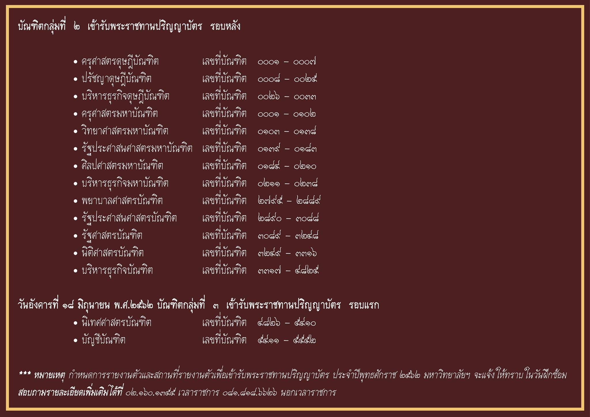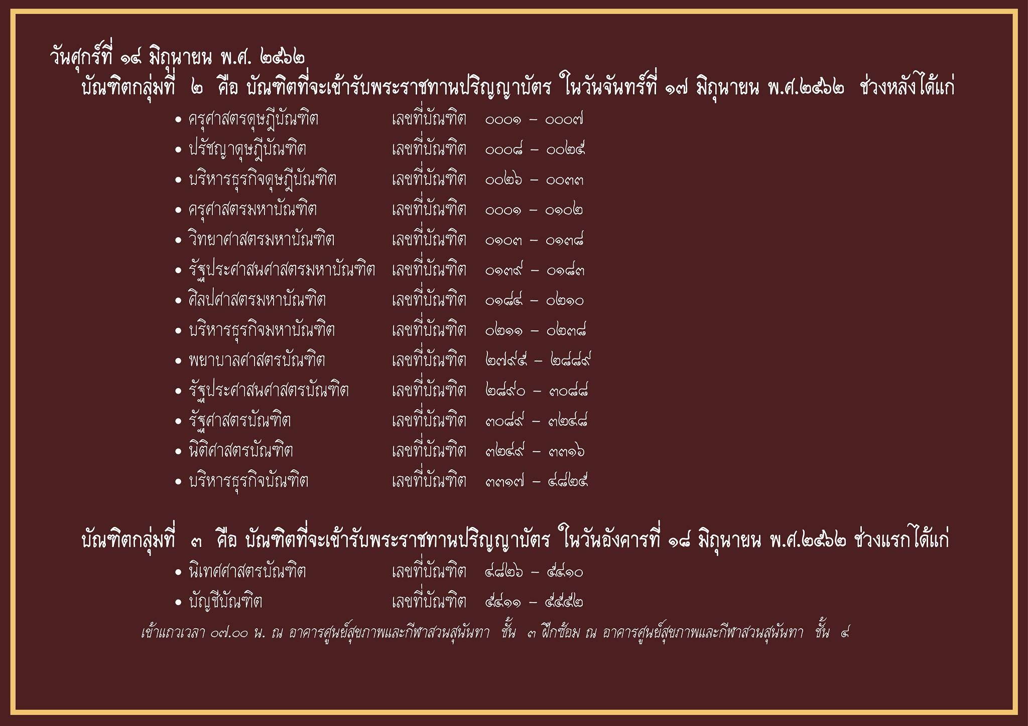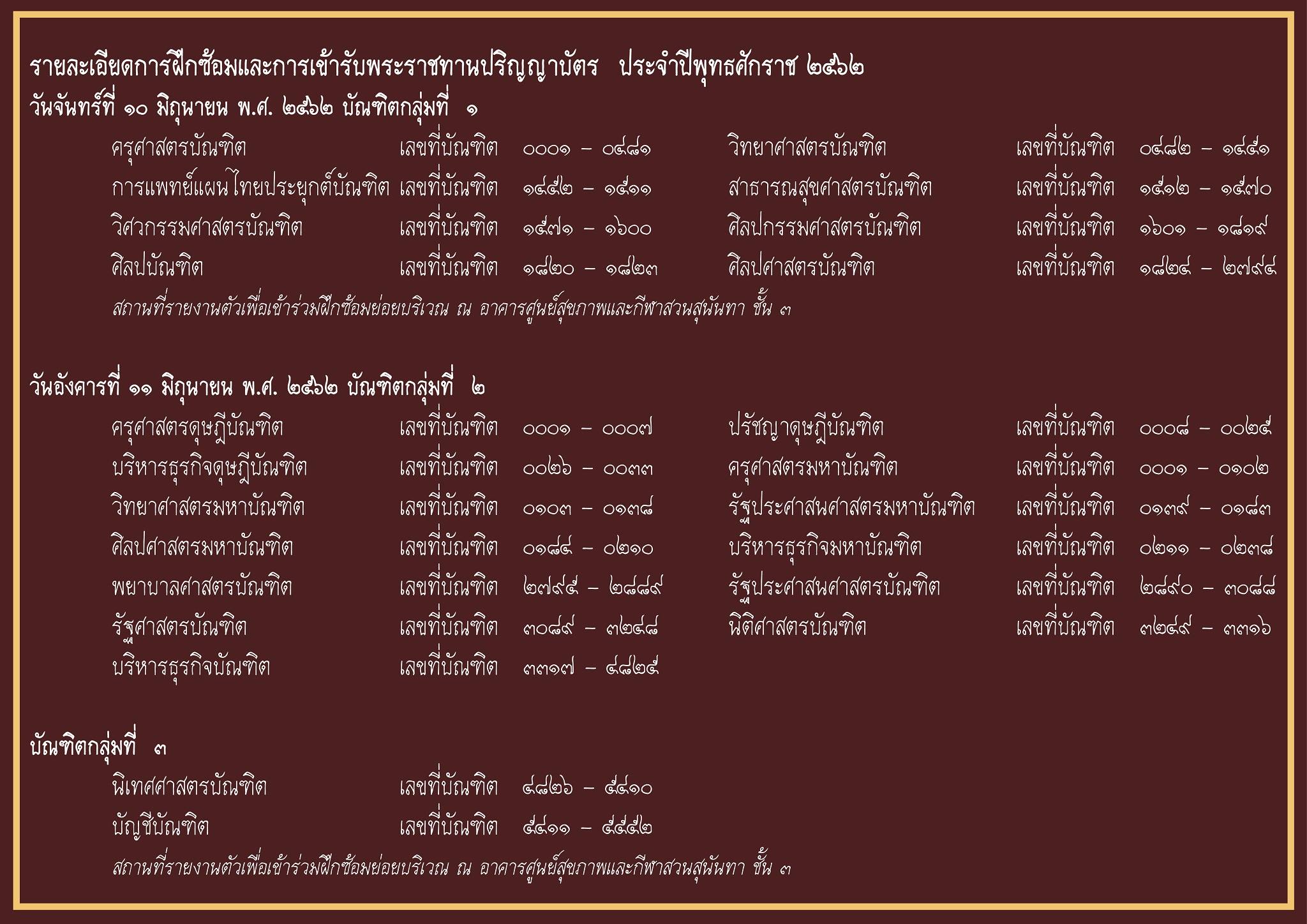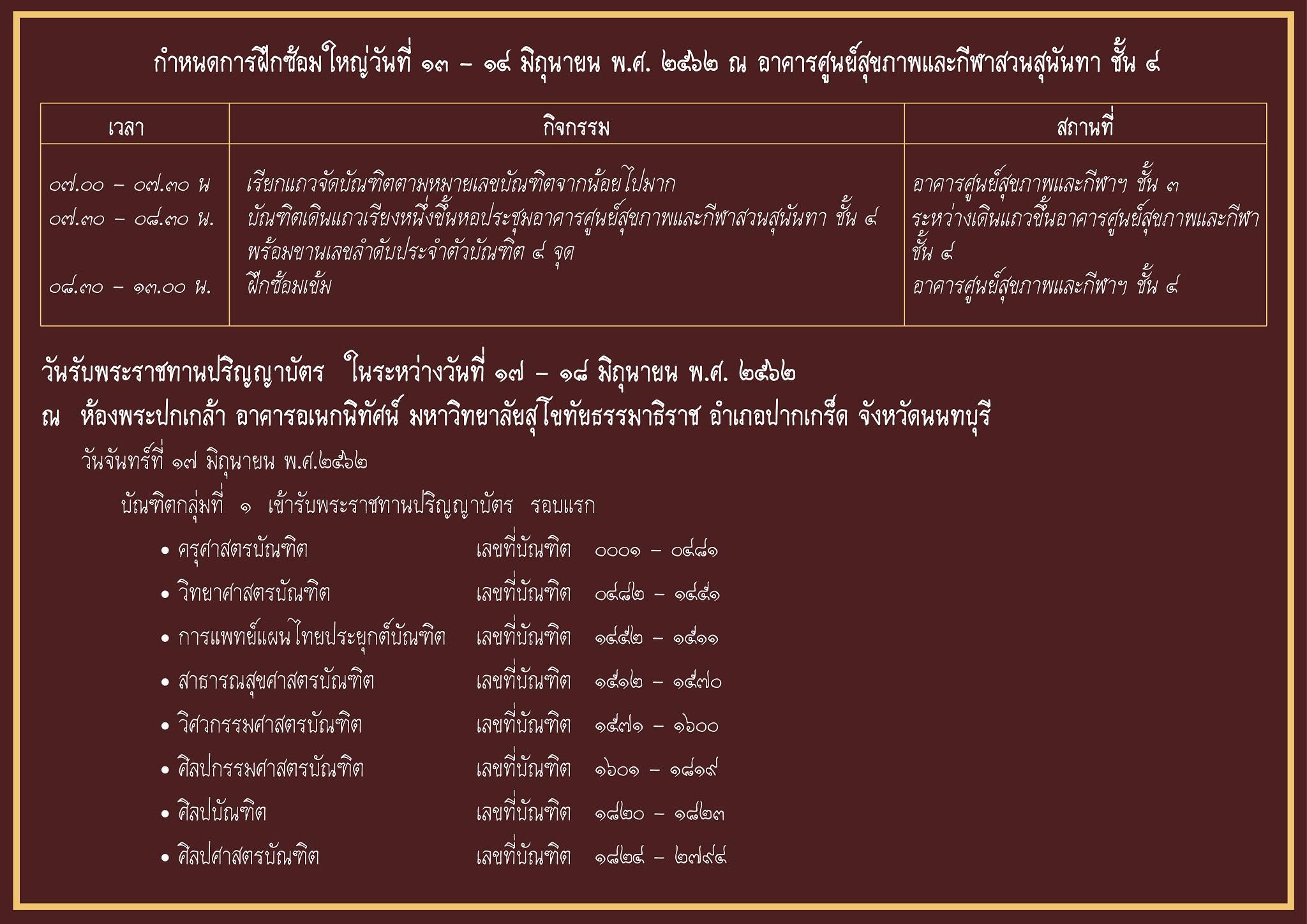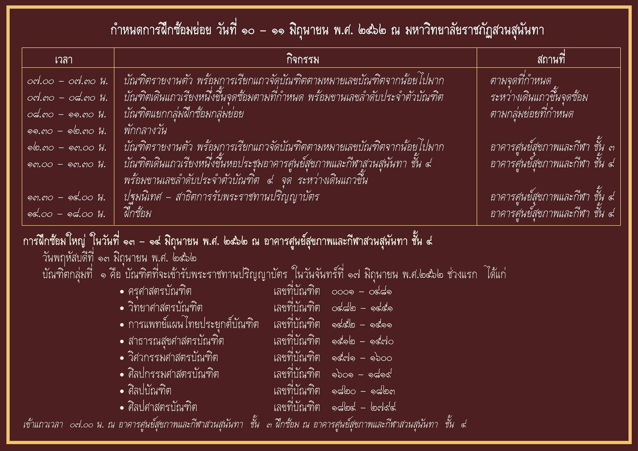 กำหนดการเพื่อเข้ารับพระราชทานปริญญาบัตร ประจำปีพุทธศักราช 2562 มหาวิทยาลัยราชภัฏสวนสุนันทา