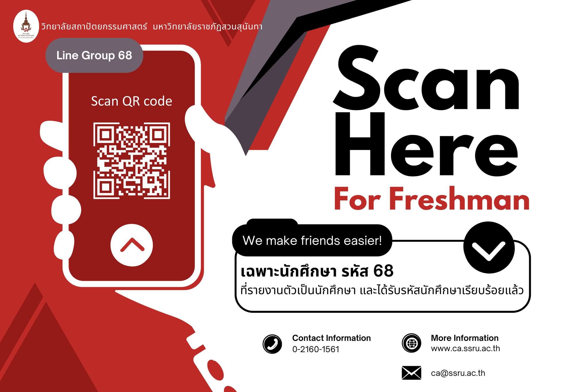 น้อง ๆ นักศึกษารหัส 68 ที่รายงานตัวเป็นนักศึกษา วิทยาลัยสถาปัตยกรรมศาสตร์ และได้รับรหัสนักศึกษาเรียบร้อยแล้วสามารถ Scan QR Code หรือผ่าน Link https://line.me/ti/g/qCu4EyNtNB เข้ากลุ่มไลน์เพื่อใช้ในการรับแจ้งข้อมูลข่าวสารต่าง ๆ ได้เลย