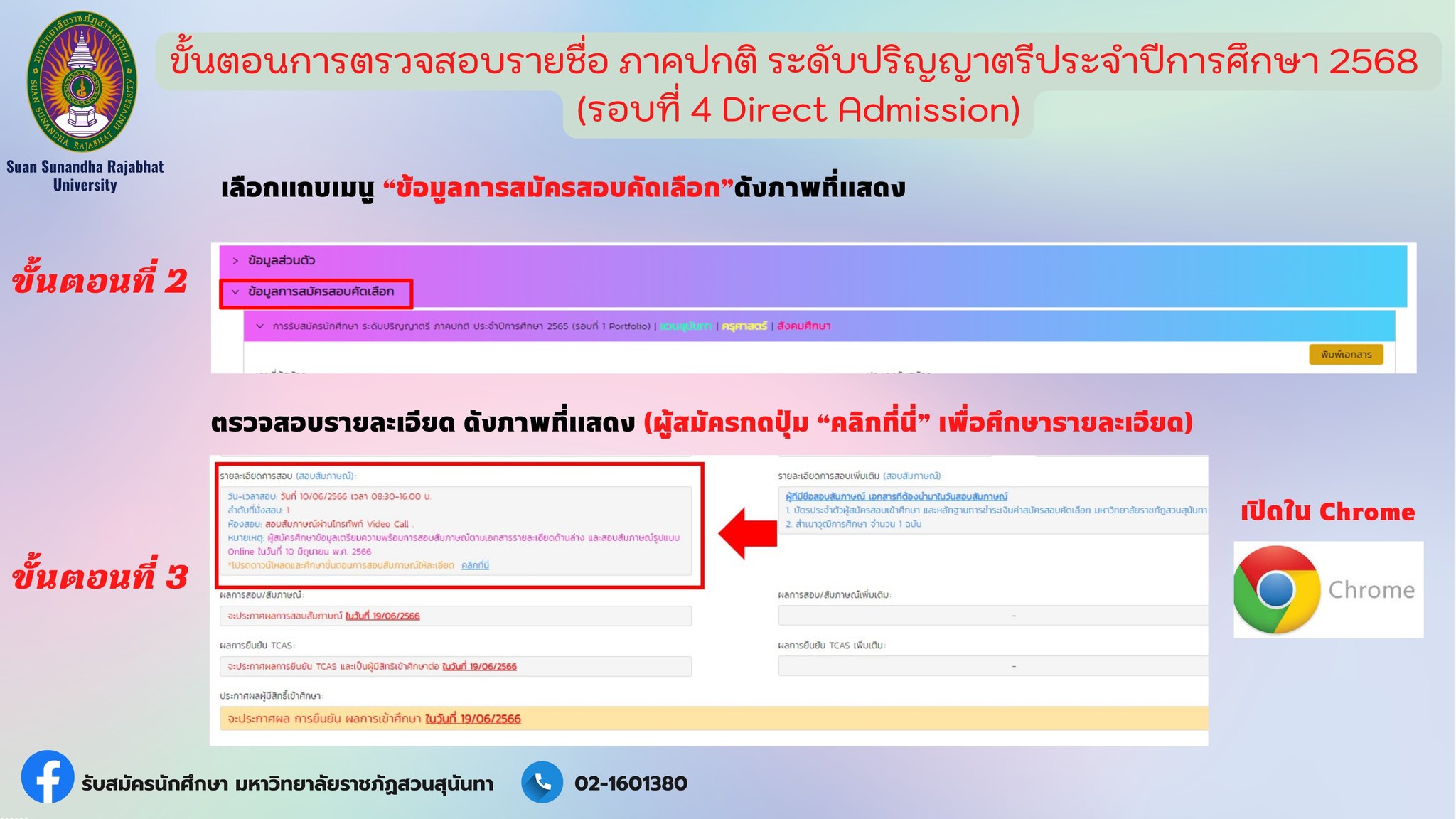 มหาวิทยาลัยราชภัฏสวนสุนันทา ประกาศรายชื่อผู้สมัคร ภาคปกติ ระดับปริญญาตรี ประจำปีการศึกษา 2568 (รอบที่ 4 Direct Admission)