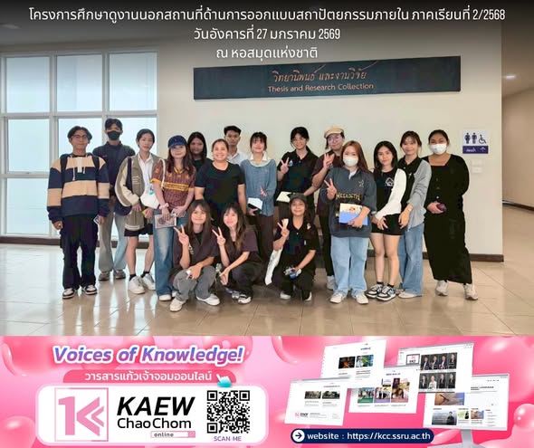 ผู้ช่วยศาสตราจารย์ฐิติรัตน์ หมื่นอนันต์ อาจารย์ประจำสาขาวิชาสถาปัตยกรรมภายใน นำนักศึกษาสาขาวิชาสถาปัตยกรรมภายใน วิทยาลัยสถาปัตยกรรมศาสตร์ มหาวิทยาลัยราชภัฏสวนสุนันทา เรียนรู้นอกห้องเรียน ณ หอสมุดแห่งชาติ