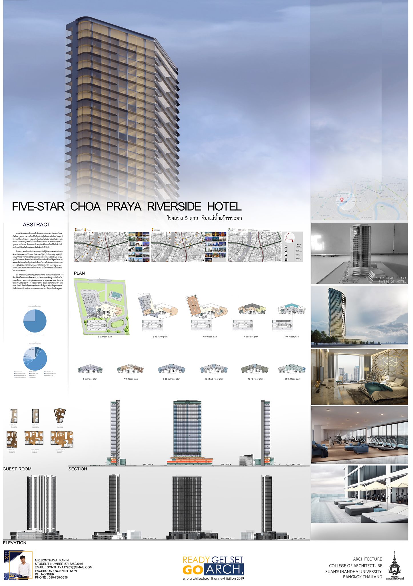 ผลงานวิทยานิพนธ์ 2562 : โครงการ โรงแรม 5 ดาว ริมแม่น้ำเจ้าพระยา (Five-Star Chao Praya Riverside Hotel) : นายสนธยา ก้านอินทร์