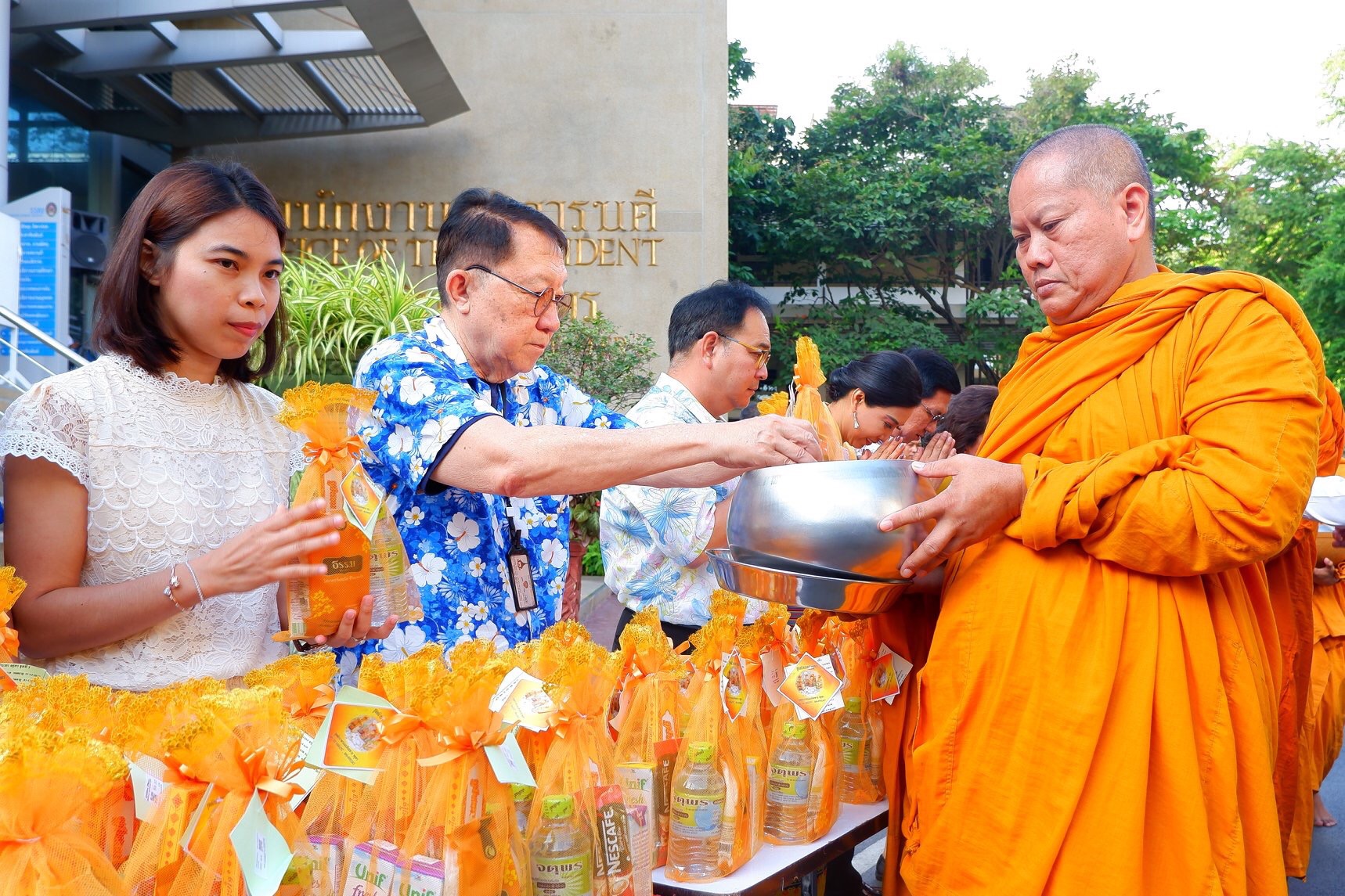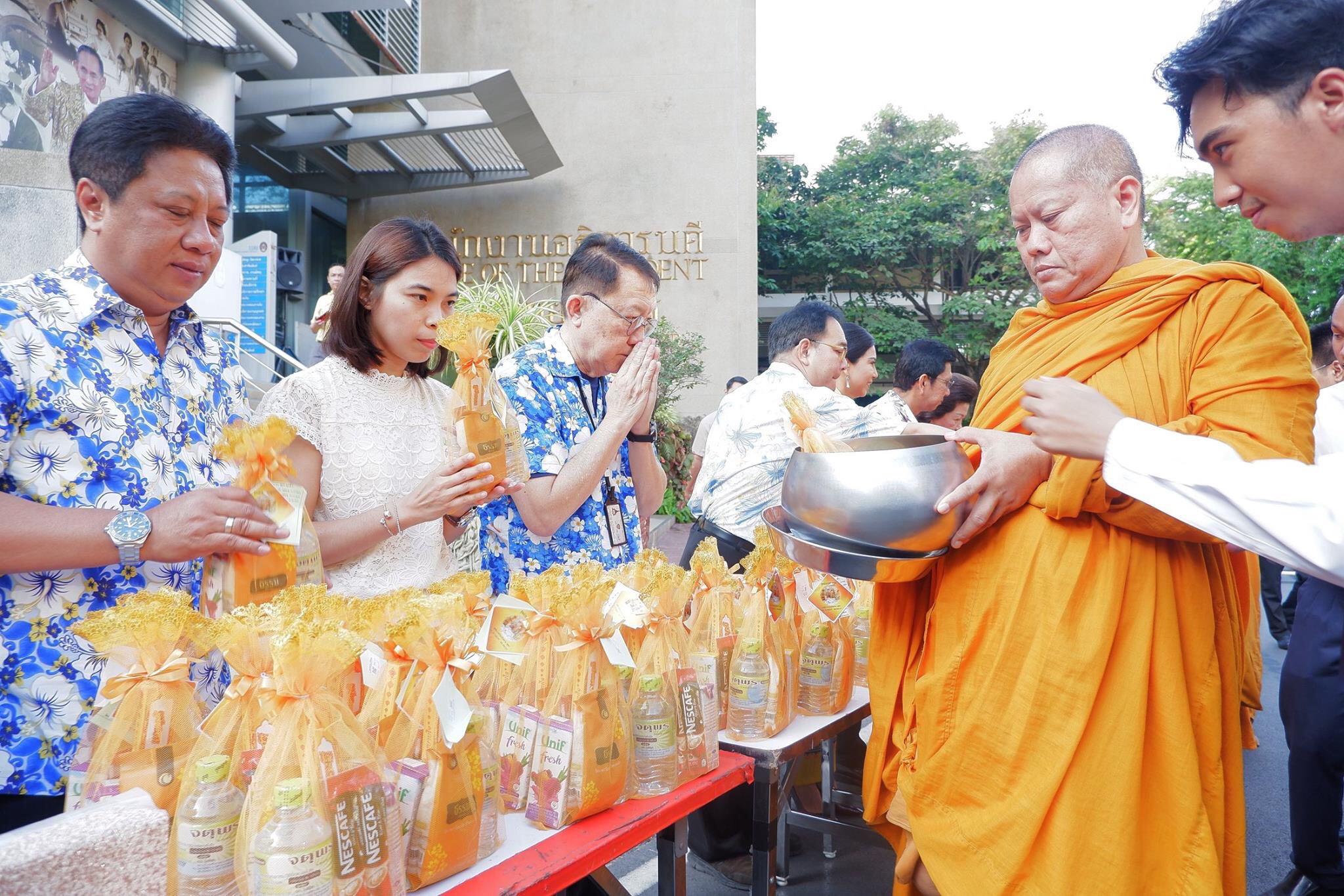 เมื่อวันที่ 9 เมษายน พ.ศ. 2562 เวลา 07.00 – 9.00 น. ณ ห้องประชุมช่อแก้ว ผู้ช่วยศาสตราจารย์ ดร.สมบูรณ์ เวสน์ คณบดีวิทยาลัยสถาปัตกรรมศาสตร์ พร้อมด้วยบุคลากร เข้าร่วมพิธีรดน้ำขอพรผู้บริหารเนื่องในวันสงกรานต์ โดยในงานมีกิจกรรมรับบิณฑบาต ข้าวสารอาหารแห้ง แด่พระภิกษุสงฆ์ จำนวน 9 รูป และรดน้ำขอพรผู้บริหารเนื่องในวันสงกรานต์