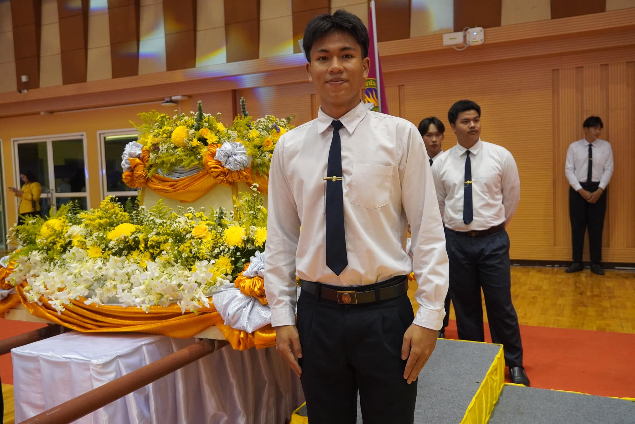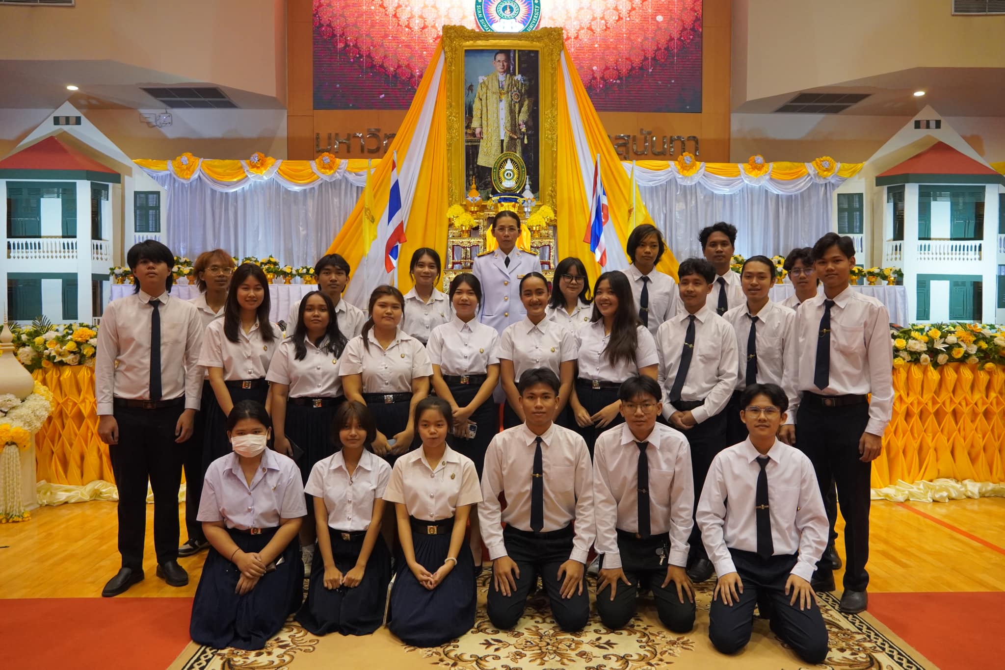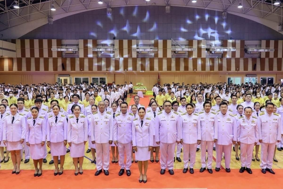 วันที่ 14 กุมภาพันธ์ 2568 อาจารย์สวลักษณ์ เชื้อสุวรรณ รองคณบดีฝ่ายกิจการนักศึกษา วิทยาลัยสถาปัตยกรรมศาสตร์ นำตัวแทนนักศึกษา ชั้นปีที่ 1 เข้าร่วมกิจกรรมพิธีอัญเชิญตราพระราชลัญจกร ประจำปีการศึกษา 2567 ณ อาคารศูนย์สุขภาพและกีฬา เพื่อเป็นการแสดงความเคารพและรำลึกในพระมหากรุณาธิคุณของ พระบาทสมเด็จพระบรมชนกาธิเบศร มหาภูมิพลอดุลยเดชมหาราช ที่ทรงพระกรุณาโปรดเกล้าฯ พระราชทานนาม “ราชภัฏ” และ “ตราพระราชลัญจกร” ส่วนพระองค์แก่มหาวิทยาลัยราชภัฏทั่วประเทศ ตลอดจนเพื่อสร้างจิตสำนึกที่ดีแก่นักศึกษาให้เกิดความภาคภูมิในในสถาบัน โดยมี รองศาสตราจารย์ ดร.ชุติกาญจน์ ศรีวิบูลย์ รักษาราชการแทนอธิการบดีมหาวิทยาลัยราชภัฏสวนสุนันทา เป็นประธานในพิธี จุดธูปเทียนเครื่องทองน้อย ถวายสักการะ เบื้องหน้าพระบรมฉายาลักษณ์ พระบาทสมเด็จ พระปรมินทรมหาภูมิพลอดุลยเดช ทั้งนี้ ผู้ช่วยศาสตราจารย์ ดร.สมศักดิ์ คล้ายสังข์ รองอธิการบดีฝ่ายกิจการนักศึกษา กล่าวน้อมสำนึกในพระมหากรุณาธิคุณ พิธีดังกล่าวมีตัวแทนนักศึกษาวิทยาลัยสถาปัตยกรรมศาสตร์ร่วมถวายพานดอกไม้ถวายราชสักการะฯ ประกอบไปด้วยนางสาวปวริศา สุภาจันทร์ นายธนวัฒน์ อู่เจริญ และนางสาวนวรัตน์ อุ่มกลาง และยังมีตัวแทนนักศึกษา ร่วมอัญเชิญขบวนเลียงตราพระราชลัญจกร คือ นายชนะชล นันมา สร้างความภาคภูมิใจให้กับนักศึกษาในการมีส่วนร่วมกับพิธีดังกล่าว