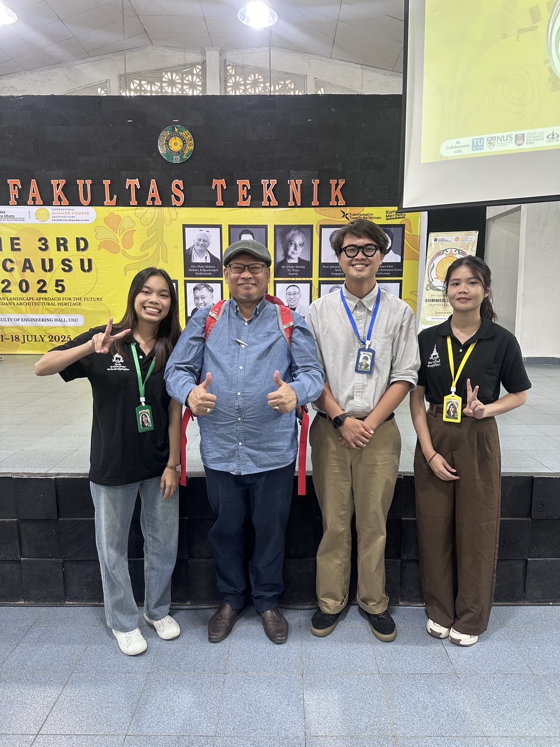วิทยาลัยสถาปัตยกรรมศาสตร์ ได้รับเชิญจาก Universitas Sumatera Utara (USU) ประเทศอินโดนีเซีย ให้เข้าร่วม Workshop ด้านสถาปัตยกรรมระดับนานาชาติ ภายใต้กิจกรรม 3rd International Summer Course ArchitectureUSU 2025 (3rd ISCAUSU 2025) โดยอาจารย์ ดร.สุริยันต์ จันทร์สว่าง คณบดีวิทยาลัยสถาปัตยกรรมศาสตร์ มอบหมาย อาจารย์พิพัฒน์ ศักดิ์ศิริเกษมกุล นำนักศึกษาสาขาวิชาสถาปัตยกรรม (นางสาวฐิติวัลคุ์ พันธ์แจ่ม) และสาขาวิชาสถาปัตยกรรมภายใน (นางสาวอริศรา ไชยศรี) เข้ากิจกรรมเพื่อสร้างเครือข่ายทางด้านวิชาการและแลกเปลี่ยนเรียนรู้ประสบการณ์ของนักศึกษาด้านสถาปัตยกรรม รวมทั้งการพัฒนาองค์ความรู้และทักษะวิชาชีพทางด้านสถาปัตยกรรมร่วมกันพัฒนาตามลำดับต่อไป