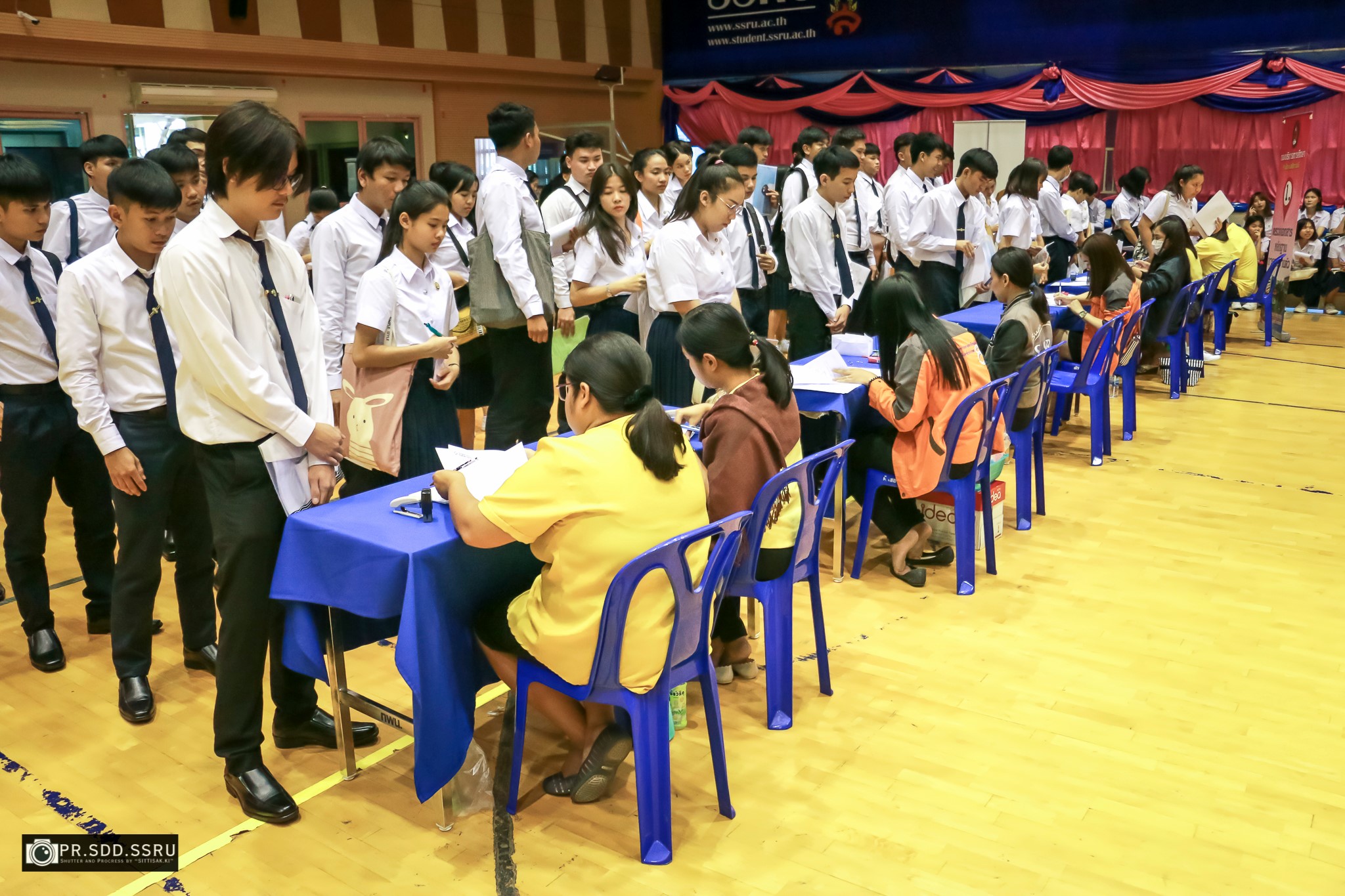 มหาวิทยาลัยราชภัฏสวนสุนันทา รับรายงานตัวเข้าศึกษา นักศึกษาภาคปกติ รอบที่ 4 Admission และรอบที่ 5 การรับตรงอิสระ ประจำปีการศึกษา 2562 ระหว่างวันที่ 25-26 มิถุนายน 2562 ณ ศูนย์สุขภาพและกีฬา (โรงยิม) ชั้น 4